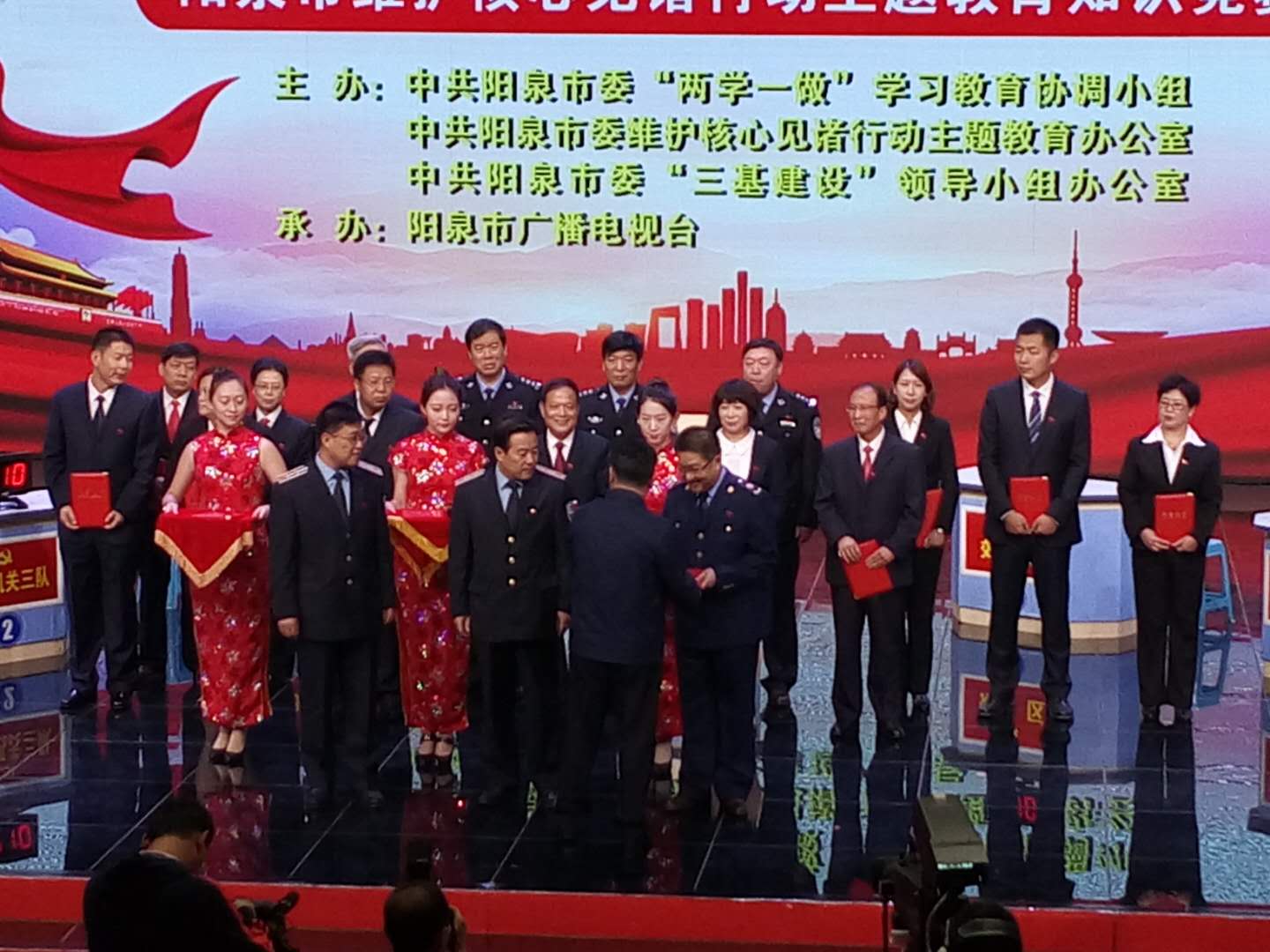 知识竞赛促教育。我局党组成员、总会计师李立新与市质监局两名领导组成的市直机关第二代表队,在阳泉市“喜迎十九大 永远跟党走”维护核心见诸行动主题教育知识竞赛中荣获一等奖,市委书记陈永奇亲自为他们颁奖。